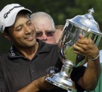 Graeme McDowell - (Northern Ireland) Ballantine's Championship Pinx - Jeju Island - South Korea - 13th to 16th March, 2008 Graeme McDowell capped an extraordinary final round at the inaugural Ballantine's Championship with a thrilling sudden-death play-off victory on the third extra hole over Jeev Milkha Singh at the Pinx Golf Club. After both players had posted 24-under-par 264 totals they returned to the 18th tee three times before Graeme McDowell produced a sublime seven iron from 179 yards to within a foot of the hole to set up a title clinching birdie. Graeme McDowell climbed to Nº 59 with an improvement of 35 places. Jeev Milka Singh moved up 11 places to Nº 79.